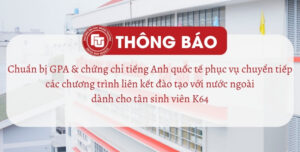 TB về việc chuẩn bị GPA và chứng chỉ tiếng Anh quốc tế phục vụ chuyển tiếp các chương trình liên kết đào tạo với nước ngoài dành cho tân sinh viên K64 10/10/2025