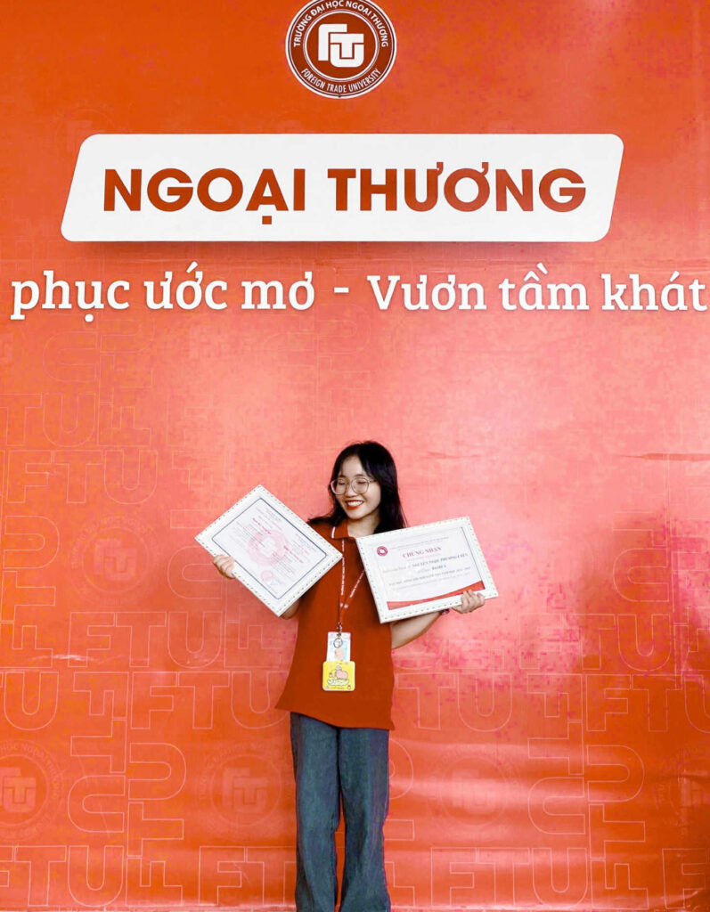 The International Education Programs, Foreign Trade University – Ho Chi Minh City Campus proudly honors Nguyen Ngoc Phuong Uyen as a Chapter-level “Five-Good Student” academic 2024 – 2025, in recognition of her academic excellence, active engagement, and meaningful contributions to student activities and community service.