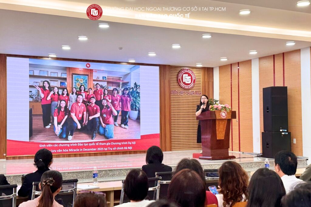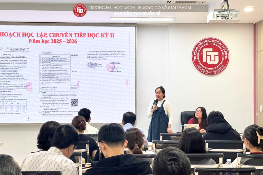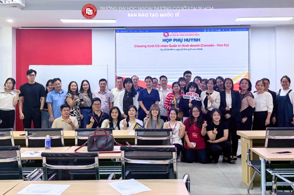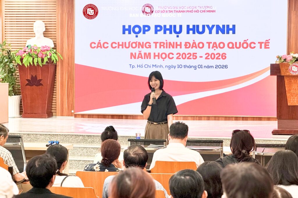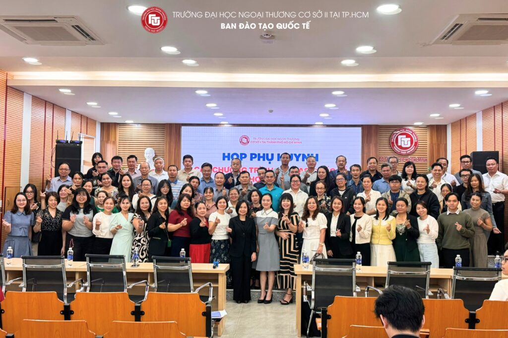 *On the morning 10th January 2025, Foreign Trade University – Ho Chi Minh City Campus convened the Parent–Student Meeting for undergraduate classes of the International Education Programs for Semester I of the Academic Year 2025–2026. The meeting was attended by the leadership of the International Education Department, class academic advisors, along with a large number of parents and students enrolled in the International Undergraduate Programs.