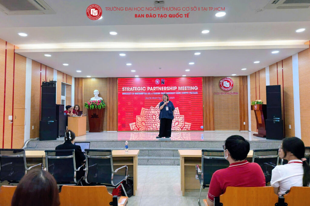 *On the morning of October 14th, 2025, the International Education Department of Foreign Trade University –  Ho Chi Minh City Campus, organized an Academic Exchange and Study Transfer Opportunity Seminar with the University of Northampton (United Kingdom) for students of the Bachelor of Marketing Program. The event took place in a formal yet open and engaging atmosphere, attracting strong interest from participating students.