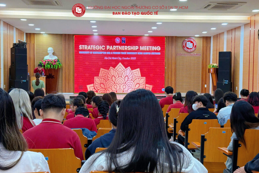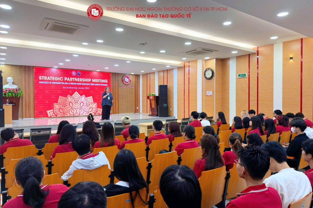 *On the morning of October 14th, 2025, the International Education Department of Foreign Trade University –  Ho Chi Minh City Campus, organized an Academic Exchange and Study Transfer Opportunity Seminar with the University of Northampton (United Kingdom) for students of the Bachelor of Marketing Program. The event took place in a formal yet open and engaging atmosphere, attracting strong interest from participating students.