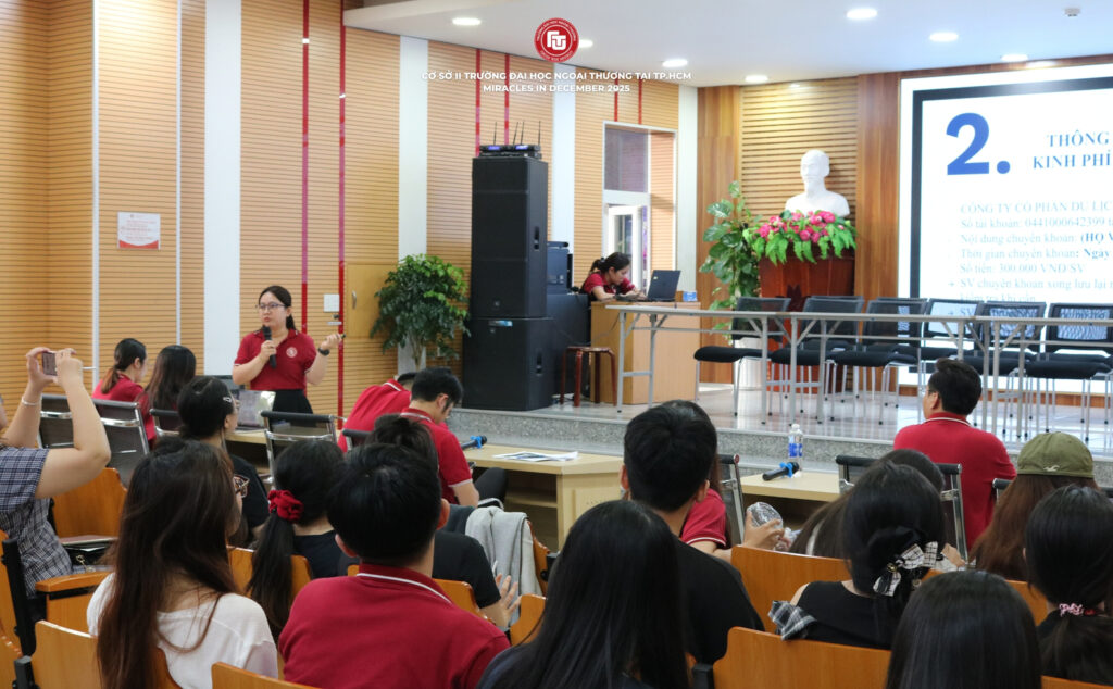 On the afternoon of December 8, 2025, the general meeting of Miracles in December 2025 (MID 2025) was officially convened, marking the commencement of the year-end festive season organized by the Youth Union of Foreign Trade University – Ho Chi Minh City Campus. The meeting signaled the launch of the MID 2025 series of activities, implemented under the spirit of Creativity – Connection – Breakthrough, with the aim of delivering a vibrant and emotionally rich winter experience to the Foreign Trade University student community. Continuing its role as a dynamic and unifying platform, Miracles in December 2025 brings together students from all three campuses—Hanoi, Ho Chi Minh City, and Quang Ninh. The event is hosted at the Main Campus of Foreign Trade University in Hanoi, under the theme “GenZ United: Speak Global, Act Local.”