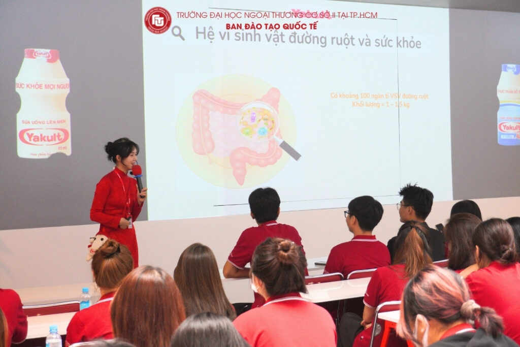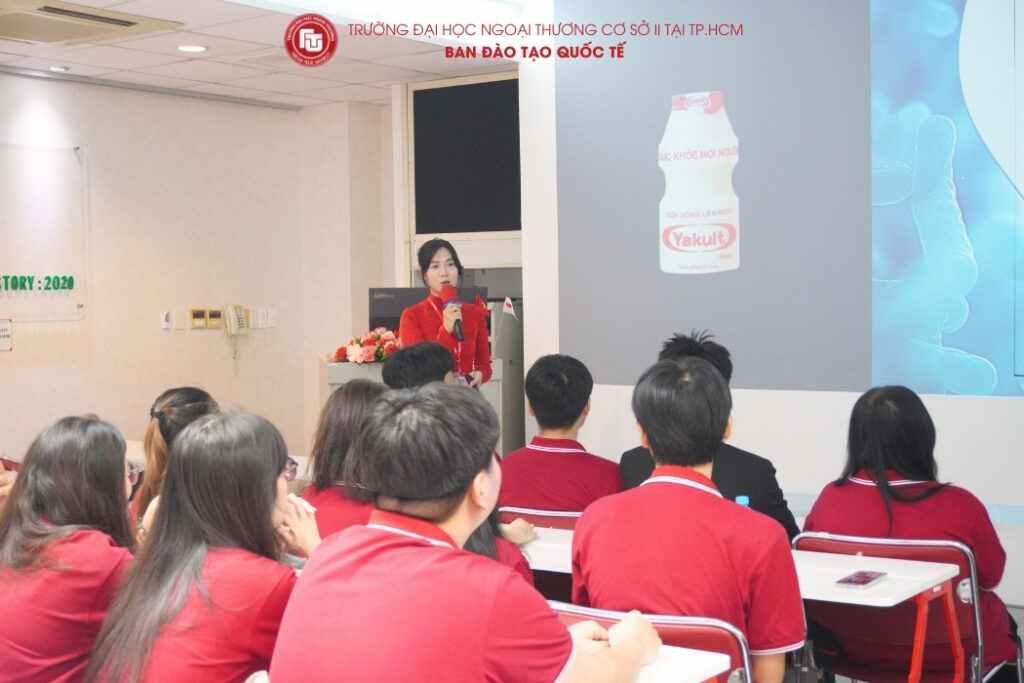Bên cạnh trải nghiệm trực quan, đoàn sinh viên còn lắng nghe phần chia sẻ từ đội ngũ chuyên gia Yakult xoay quanh chiến lược phát triển thương hiệu, mô hình vận hành bền vững và cách doanh nghiệp đã xây dựng niềm tin với khách hàng Việt Nam trong nhiều năm qua. Đây là cơ hội để sinh viên kết nối kiến thức chuyên ngành với thực tiễn, đặc biệt trong bối cảnh ngành FMCG ngày càng cạnh tranh khốc liệt.