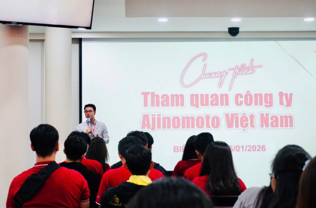 Sáng ngày 26/01, các bạn sinh viên đến từ các lớp K63CA, K63SB, K63MF và K63MJ – Chương trình Đào tạo Quốc tế, Trường Đại học Ngoại thương đã có cơ hội tham quan Nhà máy Ajinomoto Việt Nam, một trong những doanh nghiệp hàng đầu trong lĩnh vực thực phẩm và dinh dưỡng tại Việt Nam. Chuyến tham quan là hoạt động thiết thực nhằm giúp sinh viên tiếp cận thực tiễn doanh nghiệp, qua đó gắn kết kiến thức học thuật với môi trường sản xuất – kinh doanh thực tế.