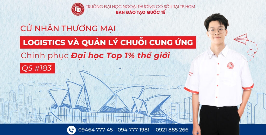 Trong bối cảnh thương mại toàn cầu và chuỗi cung ứng liên tục biến động, Logistics và Quản lý Chuỗi cung ứng đang trở thành một trong những lĩnh vực có nhu cầu nhân lực cao, thu nhập hấp dẫn và cơ hội nghề nghiệp rộng mở trên phạm vi toàn cầu. Chương trình Cử nhân Thương mại chuyên ngành Logistics và Quản lý Chuỗi cung ứng liên kết đào tạo giữa Trường Đại học Ngoại thương và Curtin University (Úc) mang đến cho sinh viên Việt Nam cơ hội tiếp cận chương trình đào tạo chuẩn Úc, bằng cấp quốc tế và lộ trình chuyển tiếp linh hoạt.