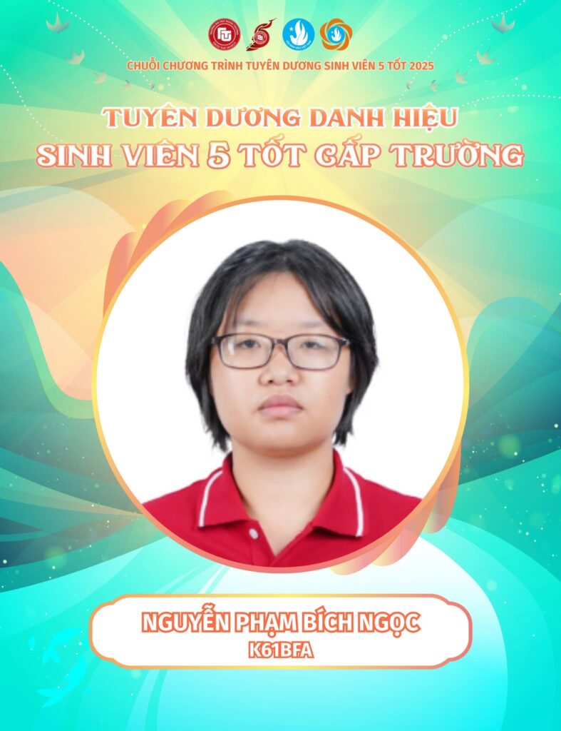 Năm học 2024 – 2025 tiếp tục đánh dấu nhiều nỗ lực và thành tựu của sinh viên các chương trình Đào tạo quốc tế, Cơ sở II Trường Đại học Ngoại thương tại TP. Hồ Chí Minh. Mới đây, Hội Sinh viên Trường đã công bố danh sách 208 sinh viên đạt danh hiệu Sinh viên 5 tốt cấp Trường – những gương mặt tiêu biểu đã không ngừng phấn đấu trong học tập, rèn luyện và cống hiến cho cộng đồng. Trong số các bạn sinh viên tiêu biểu được vinh danh năm nay, Ban Đào tạo Quốc tế, Cơ sở II tự hào có 06 sinh viên đạt danh hiệu Sinh viên 5 tốt cấp Trường. Đây là thành quả đến từ tinh thần trách nhiệm, sự chủ động và nỗ lực không ngừng của các bạn sinh viên trong suốt một năm học nhiều thử thách.